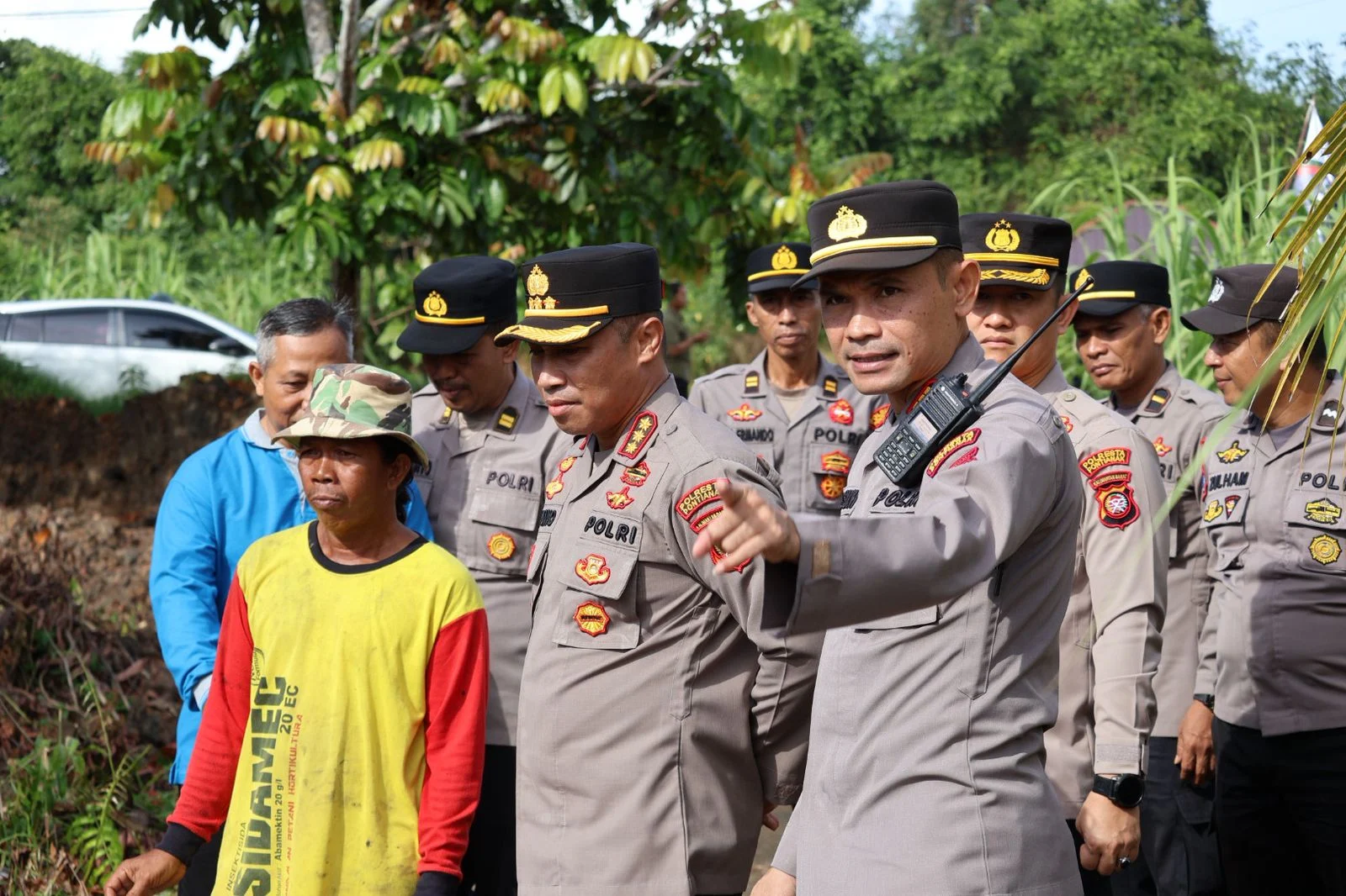 Kapolresta Pontianak Kombes Pol Suyono, S.I.K., S.H, M.H., bersama Wakapolresta Pontianak AKBP Hendrawan, S.I.K., M.H., didampingi Kapolsek Pontianak Barat AKP Basuki Arif Wibowo, S.A.P., M.Sos., melaksanakan peninjauan lokasi Program Ketahanan Pangan Pemanfaatan Pekarangan untuk Bahan Pangan (P2B) yang berlokasi di Jalan Berdikari, Kelurahan Pal Lima, Kecamatan Pontianak Barat, Jumat 03/10/2025)