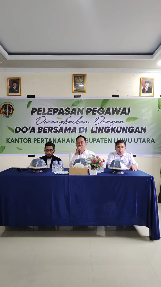 Masamba –Suarakeadlannews.id- Suarakeadilannews.id- Suasana haru dan kebersamaan menyelimuti Aula Kantor Pertanahan Kabupaten Luwu Utara. Seluruh jajaran pegawai berkumpul dalam kegiatan Pelepasan Pegawai yang Dirangkaikan dengan Do’a Bersama, sebagai bentuk penghargaan dan rasa terima kasih kepada pegawai yang telah berpindah tugas ke tempat baru. (Selasa, 4 November 2025)