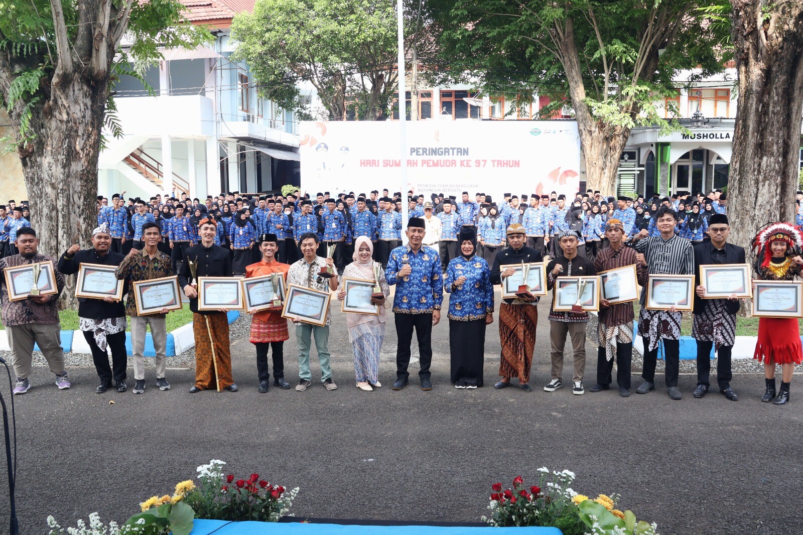Bojonegorp-; Pemerintah Kabupaten Bojonegoro secara memberi penghargaan dan tropy kepada sejumlah Pemuda Pelopor di 2025. Penyerahan dilaksanakan pada Selasa (28/10/2025) saat upacara peringatan Hari Sumpah Pemuda ke-97 di halaman Gedung Putih Pemkab Bojonegoro.